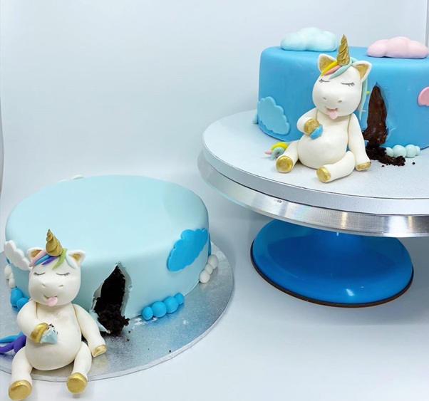 This class is suitable for beginners. You will be guided, step-by-step, through the process of decorating a cake with fondant. Once you have your beautifully iced cake you will then learn how to make various additions, as well as a topper for your cake. The picture here is of the hungry unicorn but you may wish to make a teddy bear or a lion for your topper.